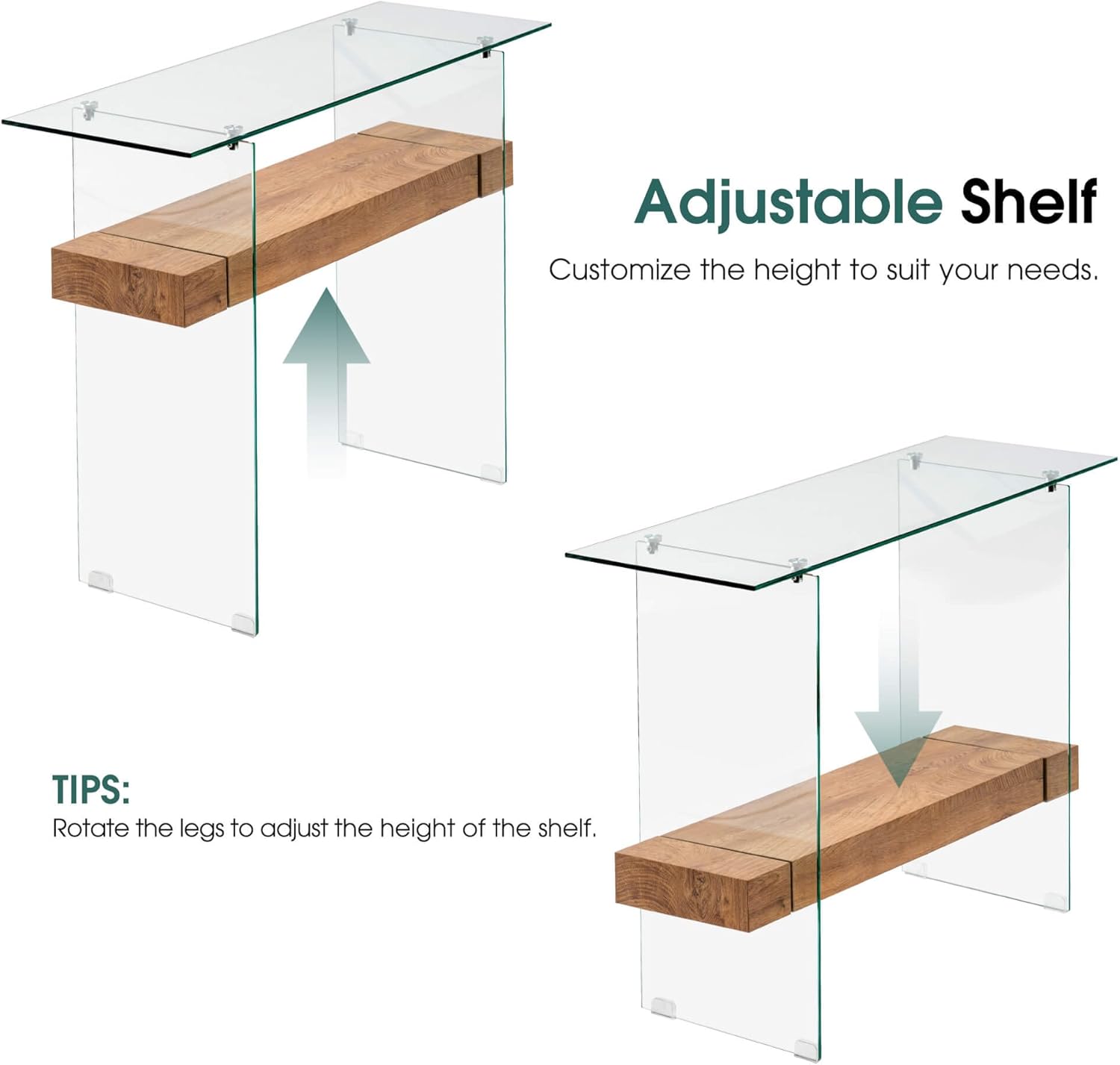 - 2-Tier Storage Entryway Table: Featuring two open shelves, this console table provides ample storage and display space. Its versatile design makes it a functional addition to your living room, entryway, or hallway, helping keep your space organized