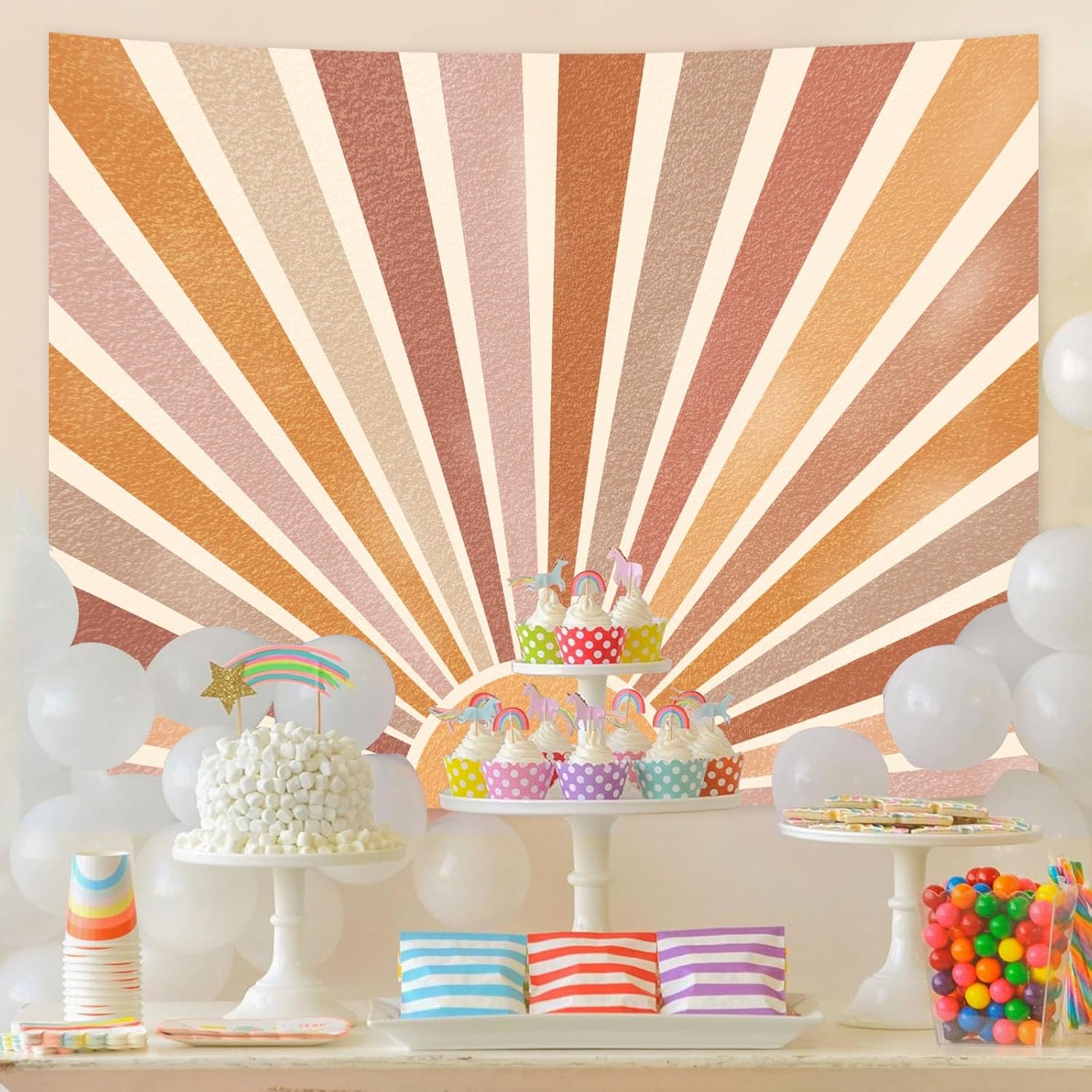 Kanuyee Retro Burning Sun Tapestry Wall Hanging, Vintage 70s Abstract Geometric Sunrise Tapestries for Bedroom Living Room Backdrop 44×60 inch