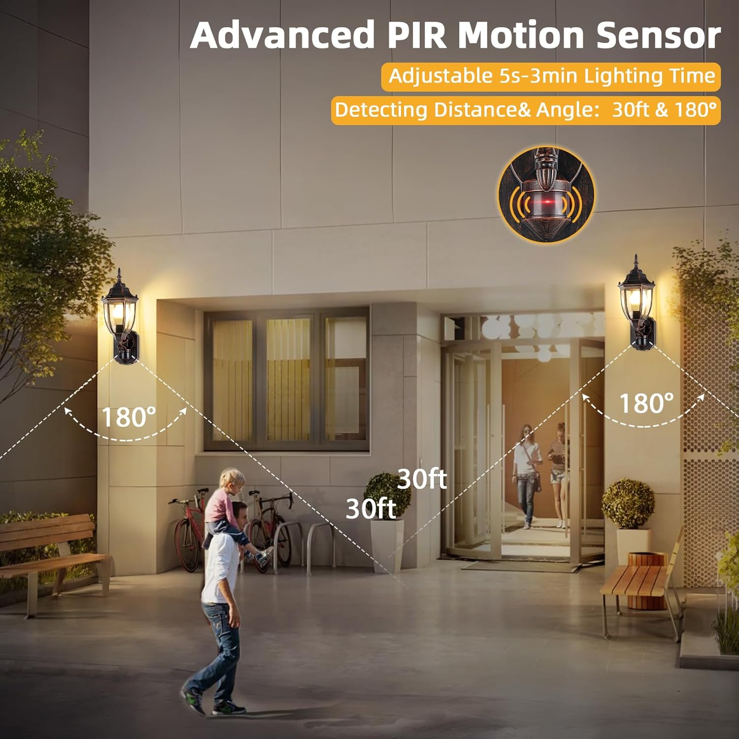 - Wide Detected Range & Compatible With E26 Bulbs: Our motion sensor wall lanterns can be easily triggered by moving people, cars or animals. The detection distance of sensor is from 0 to 30 feet. Bulbs are not included in the package
