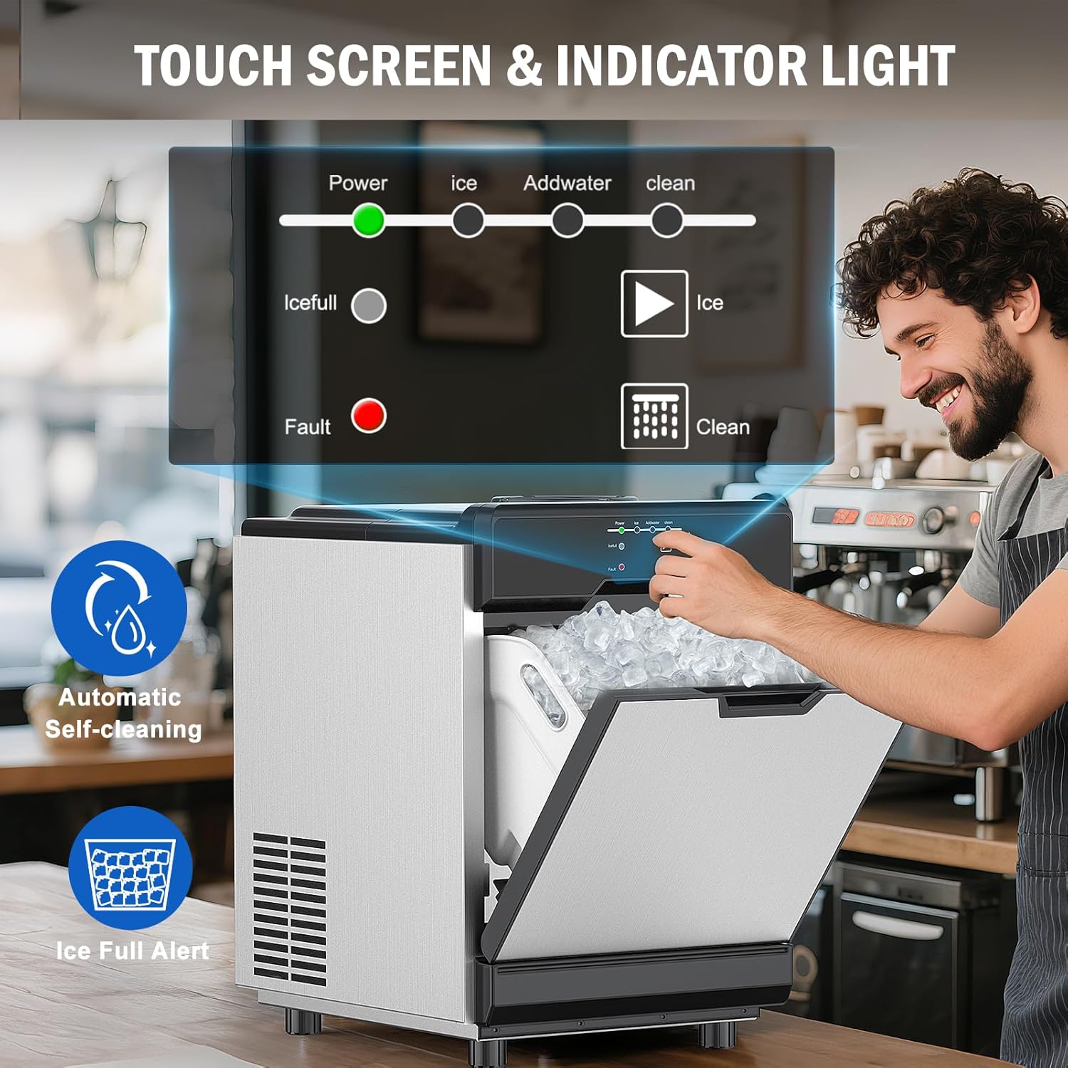 - SMART OPERATION WITH INDICATOR LIGHTS: Equipped with a user-friendly control panel, this nugget ice maker offers multiple indicator functions and one-touch automatic cleaning—making operation effortless and hassle-free.